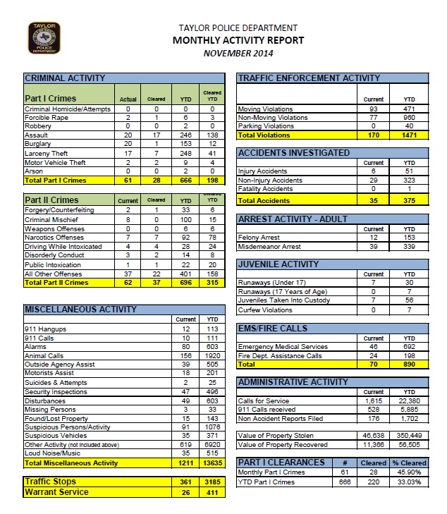 - MONTHLY ACTIVITY REPORT - NOVEMBER 2014