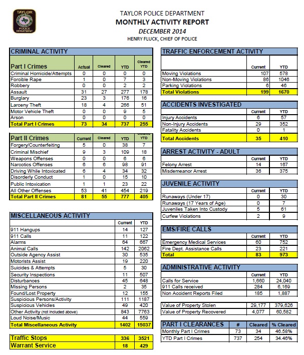 - MONTHLY ACTIVITY REPORT - DECEMBER 2014