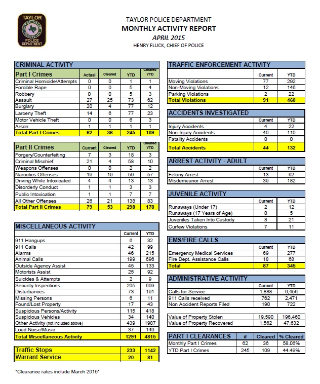 - MONTHLY ACTIVITY REPORT - APRIL 2013