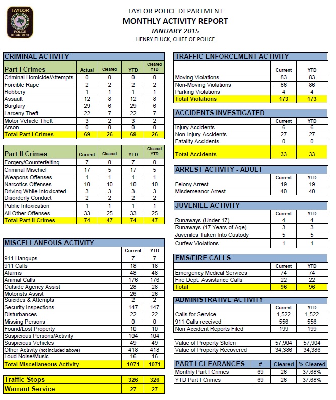 - MONTHLY ACTIVITY REPORT JANUARY 2016