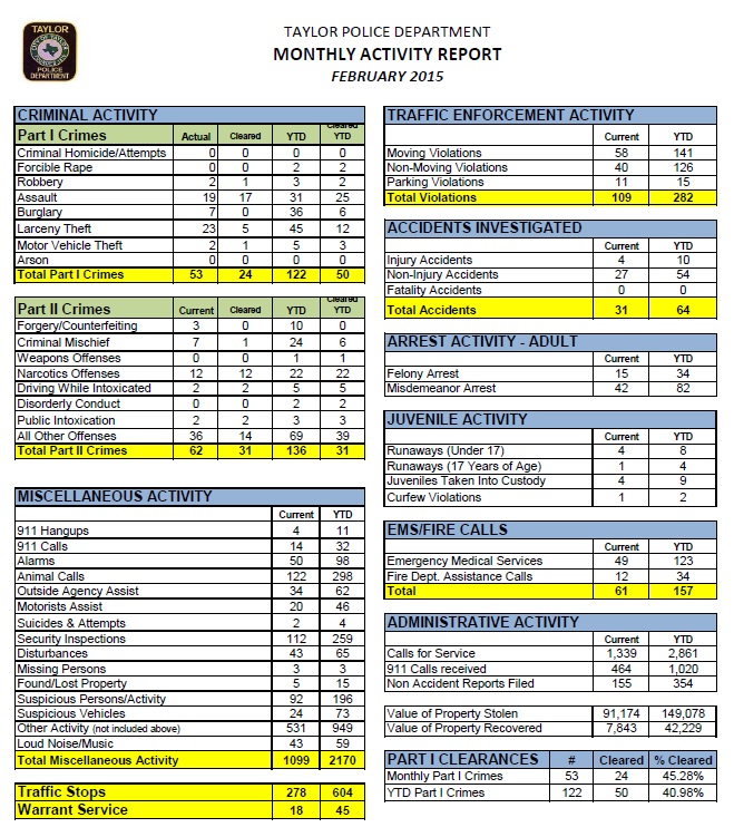 - MONTHLY ACTIVITY REPORT FEBRUARY 2016